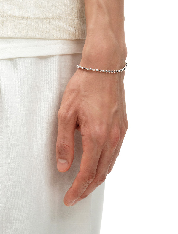 A lightweight ball chain bracelet with a basic silhouette. A layered piece that can be casually paired with any look.