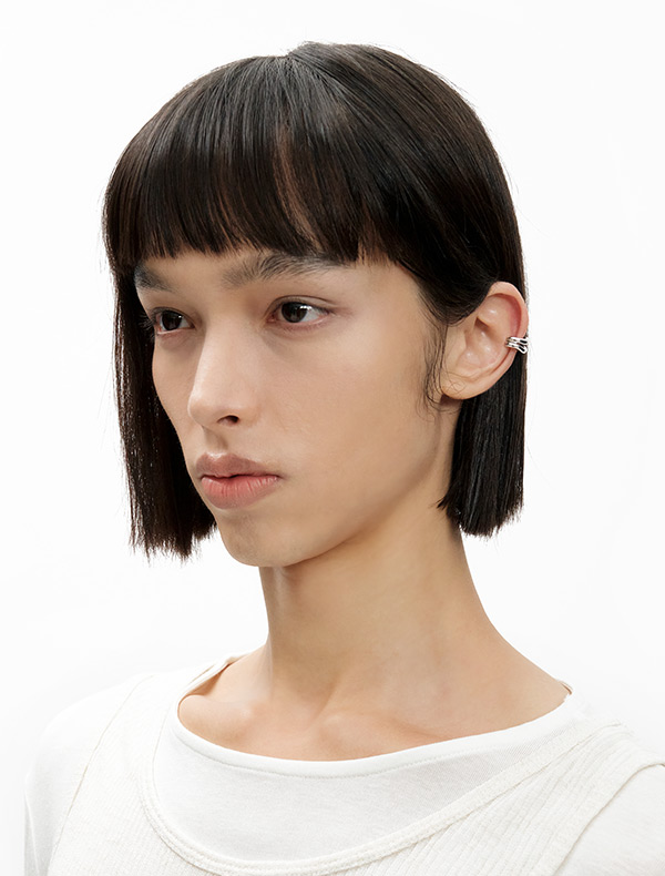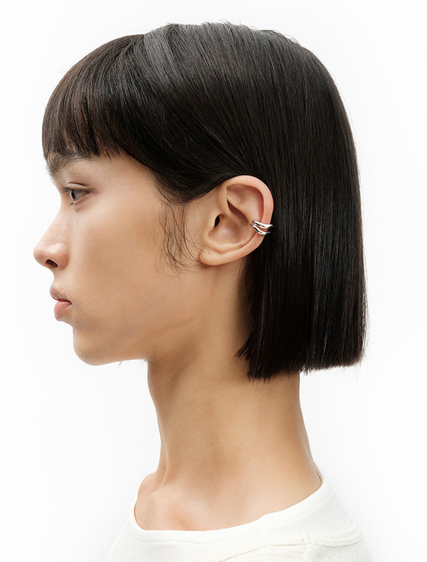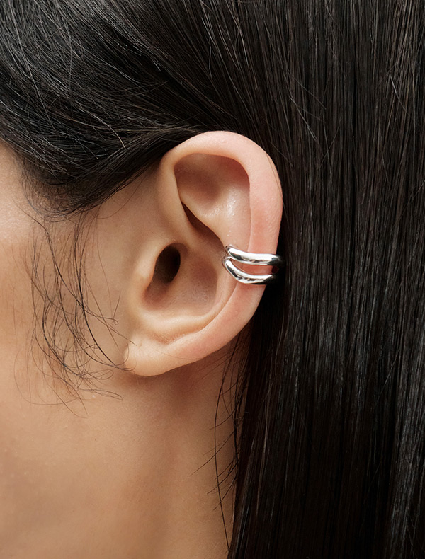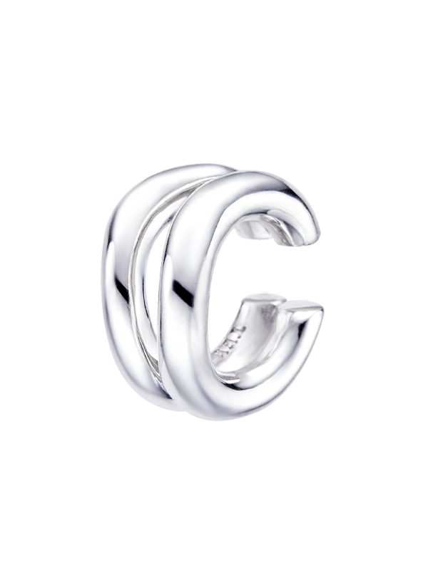 An ear cuff with refined groove details. A free-flowing silhouette created by the curves of two pipes.