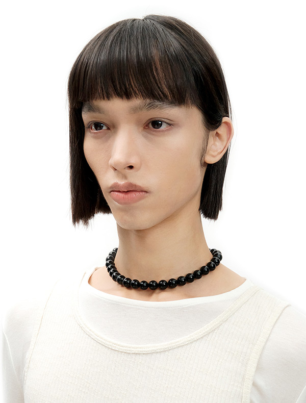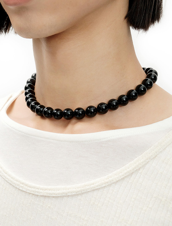 A minimal onyx necklace with added detailing and T-Ring J's unique decorations.