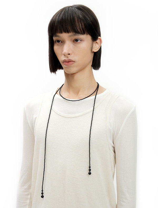 A long necklace with a free and cool mood, created by light and flexible movements.